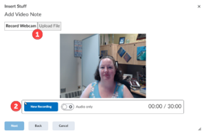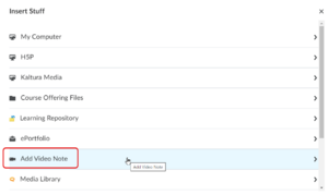 Video notes can be added to any HTML editor in Brightspace. You can record or upload video or audio files.