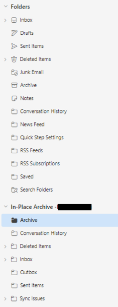 - Any users returning to the organization and accessing Outlook, will find their older items by scrolling down to the “In-Place Archive” or "Online Archive" folder.