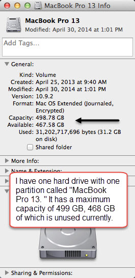 - Listed in the box under the General heading will be the capacity and available drive space (Fig 1)