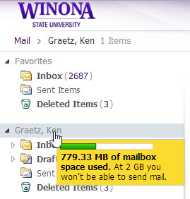 - Mouse over your name in the left sidebar (Figure 1). Your current mailbox usage will pop up.