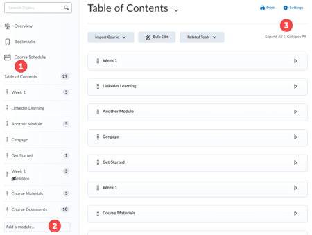 - Module and sub-module descriptions can help orient students and give your TOC a polished look.