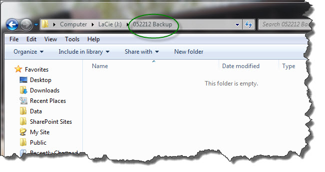 - Open your external drive. Make a new folder called Backup along with today’s date. Open this folder.