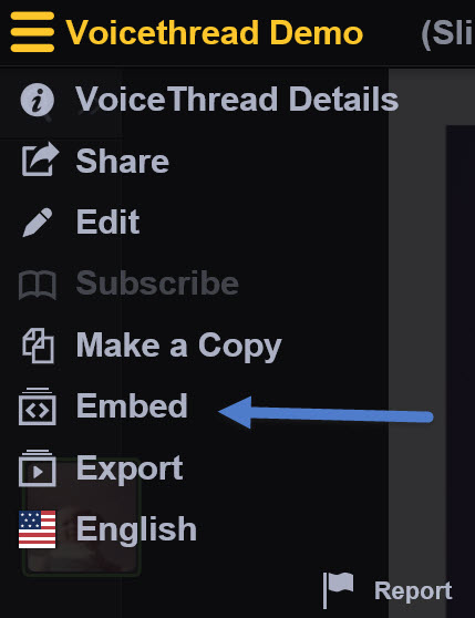 Once all of your group members have recorded their webcam videos for the project the Group Producer will also need to embed the Voicethread video into the D2L Discussion Board. Do not post the embed Voicethread video in the Discussion Board until everyone has recorded their slides. The following step-by-step directions explain this process.