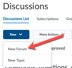 3. Select New button and choose New Forum. (Before you can create a discussion topic, you need to create a discussion forum to contain the topic.) (Fig 1)