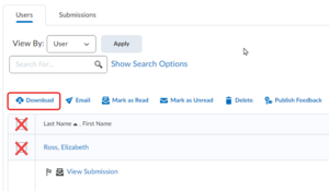One helpful component of this tool is that you can download all of these papers at once in case you need to grade offline and then upload graded works once you are connected again. There are two ways to do this: individually, or multiple students at once.