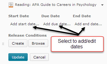 2. Enter/edit the start date, end date, due date, and/or release conditions (Figure 3).