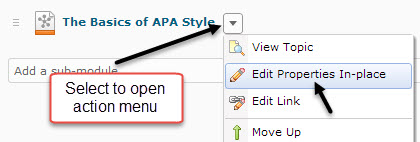Select Edit Properties in Place from the topic's action menu (Figure 4).