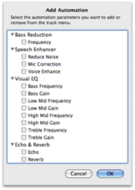 The drop down menu will give you the choice of additional controls over the track including Track Volume, Track Pan, and common effects like EQ, echo and reverb.
