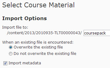- Sometimes it's necessary to import a course pack multiple times (e.g., if a mistake is made in a previous import). Enabling the overwrite setting will prevent duplicate copies of imported files, as well as duplicate modules and topics.