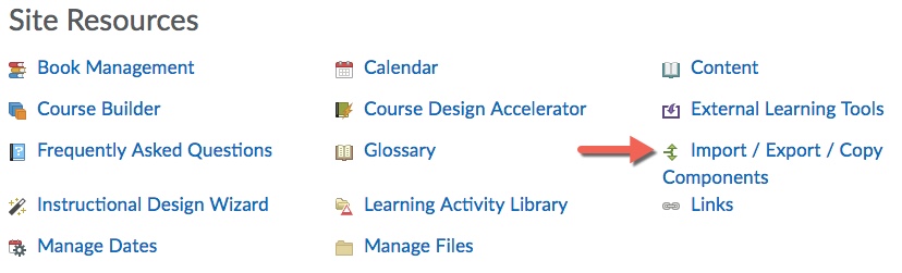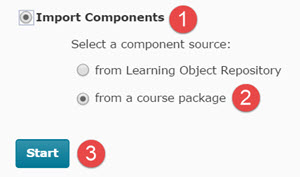 - Select Import Components and from a course package. Select the Start button (Figure 2).