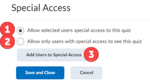 - Select either Allow selected users special access to this quiz (most common) or Allow only users with special access to see this quiz (Figure 2.1).