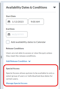 Draft:Special Access in Quizzes