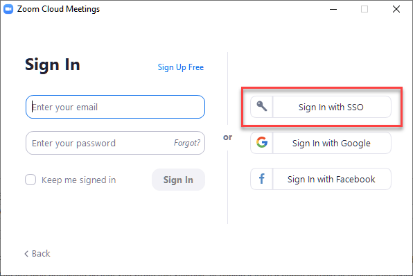 The Zoom desktop client application will download and install automatically when you start or join your first Zoom meeting, and is also available for manual download. You may notice a shortcut to this application on your dock, desktop, or Start menu. If you use this client to start and join meetings that you are hosting, make sure to sign in with SSO (Fig 2) so Zoom recognizes you as the legitimate host of the meeting. Your Minnesota State Zoom Pro account is associated with your StarID. If asked, your domain is minnstate.