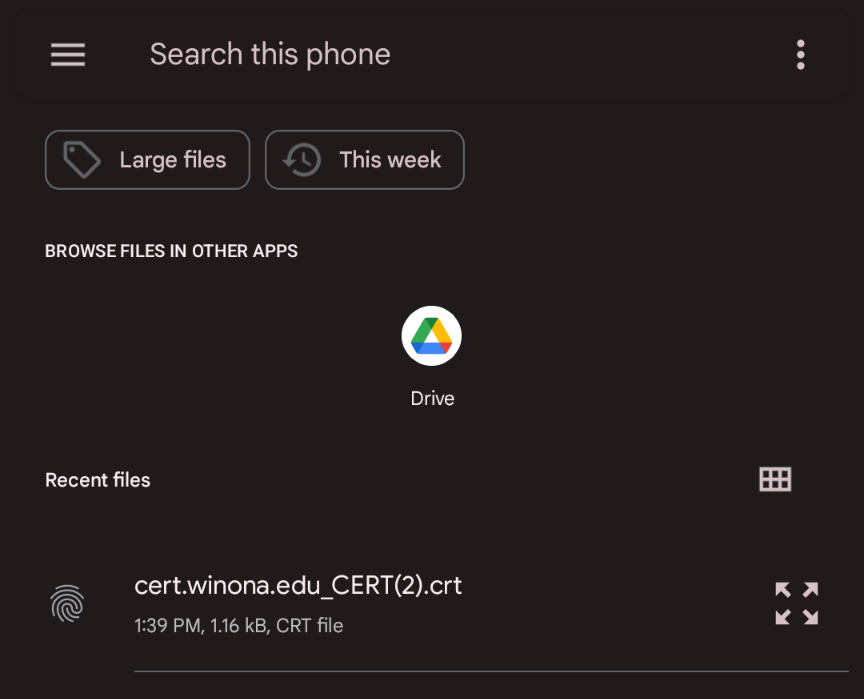 tap to select the crt file