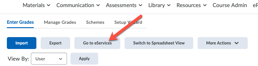 eServices button in Enter Grades tab