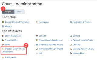 | current | 05:17, 7 December 2020 | 856 × 529 (100 KB) | KGraetz (talk | contribs) | This screenshot illustrates the selection of the import/export/copy components link from the Course Administration page. |