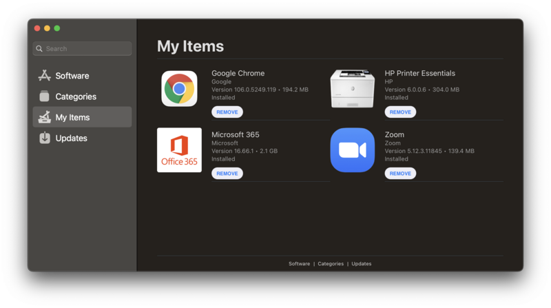 An example of the app installed on a computer showing in the My Items section of Managed Software Center.