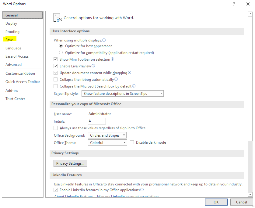 Inside Options menu