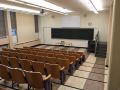 Capacity = 62 Room Type = Lecture hall Seating = Fixed Student Work Surface = Small desk Display = Projector - Epson D6155W Audio = Wall-mounted speakers Boards = Chalkboard Controls = Crestron QuickMedia Video Conferencing (ITV) = No Document Camera = Yes DVD/VCR Player = Yes | |