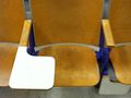 Gildemeister 156 is a centrally scheduled classroom located on the first floor of Gildemeister Hall on the Winona campus. It is a 62-seat, pitched-floor, lecture-style classroom with seven rows of wooden chairs secured to the floor. The first six rows have nine seats each and the back row has eight seats. Each chair has a retractable arm with a small work surface. The room is oriented with the front facing west with windows on the south wall. There is a large chalkboard across the front wall and a projection screen mounted above it. There is a large, mobile teaching station at the front of the room.