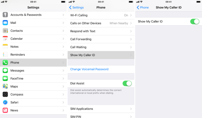 Your carrier may allow you to hide your caller ID in your phone's settings (Fig 1). Not all carriers allow this.