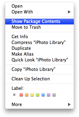 You can open this "package-contents" just as if it were a file folder, by selecting Photo Library and bringing up a right-click menu, as shown in the thumb.