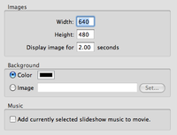 This option will output your iPhoto Slideshow as you have defined it in iPhoto into your selected format.