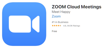 Search for the Zoom Cloud Meeting app (Fig 3) on the Apple App Store or Google Play. Download and install it as you would any phone or tablet app. Note that there are several apps with the word Zoom in them. Make sure you install the right one.