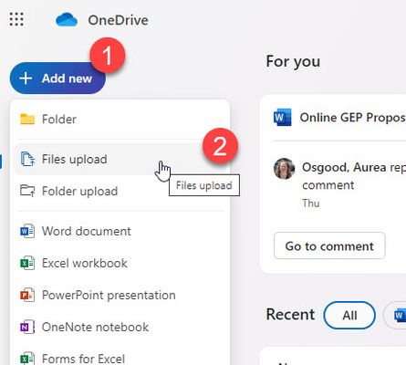 - Select the files or folders to upload to OneDrive.