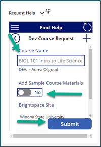 If you need changes to the configuration of your sandbox course, email tlt@winona.edu and include a description of the changes you need.