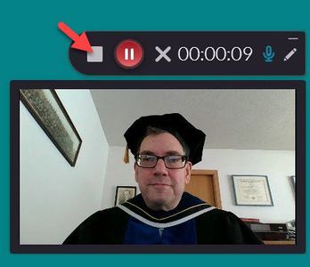 - From the webcam display window, select the circular record button.