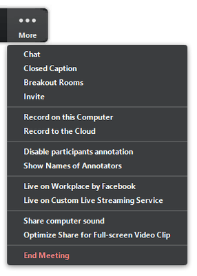 - End Meeting: Leave the meeting or end the meeting for all participants.
