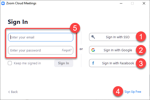 If you signed in to a Zoom meeting previously with a personal Zoom account or your Google or Facebook credentials: