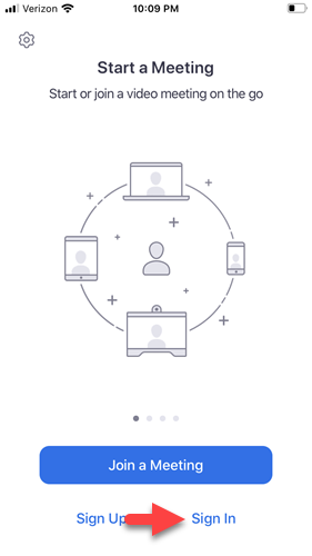 - Open the Zoom application on your computer, phone, or tablet. If you don't know how to do this, review these instructions. If you are not already signed in to Zoom, you will see a window that resembles Figure 1. If you are already signed in, you will see a window that resembles Figure 4.