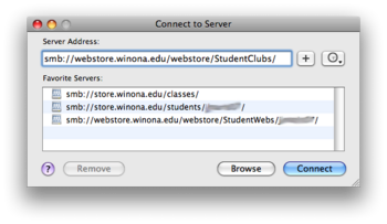 - smb://webstore.winona.edu/webstore/StudentWebs/YOUR WSU USER ID/