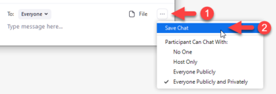 - Select Save Chat from the menu (2). The file will be saved in the default folder location.