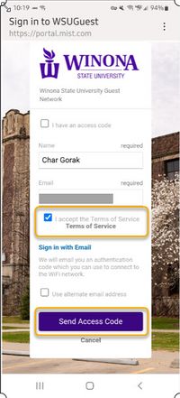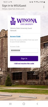 Visitors to Winona State are welcome to enjoy our campus wireless network using a temporary WSU Guest wireless account. Visitors can connect one device (e.g., phone, laptop, tablet) for 24 hours, after which they will need to renew their guest account. Connecting to WSU Guest wireless is not recommended for current WSU students or employees, who can connect to the Warrior and Wazoo networks using their StarID credentials