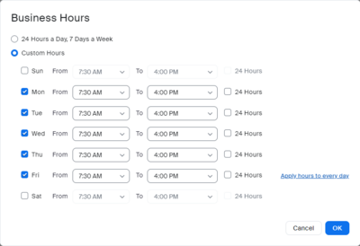 - Specify the hours during the week that you will accept calls (Fig 4). All other calls with go to voicemail automatically.